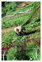 - Membuat sistem teras dan bedengan permanen berukuran 8x1 meter sehingga erosi tanah dapat dikurangi dan penyerapan unsur hara dari pupuk organik meningkat